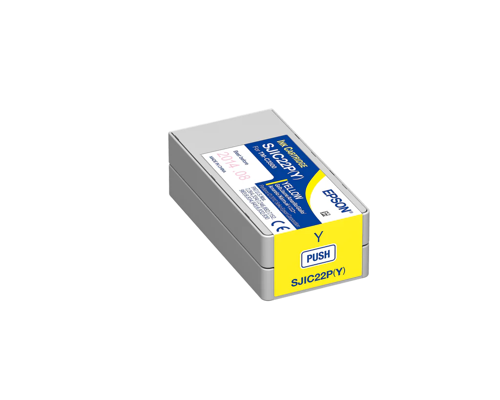 Epson’s (SJIC22P-Y) Yellow Ink Cartridge is compatible with the TM-C3500 Color Inkjet Label Printer.